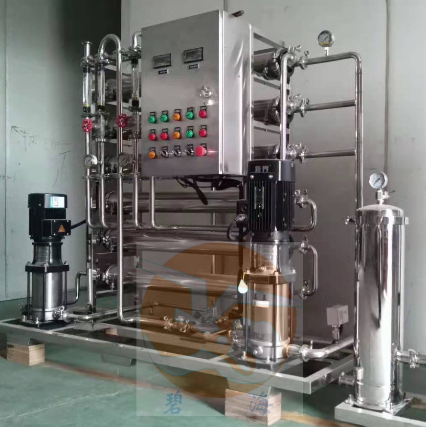 3、在一级反渗透和二级反渗透间设有 PH调节装置,以保证设备产水电导率符合药典要求;