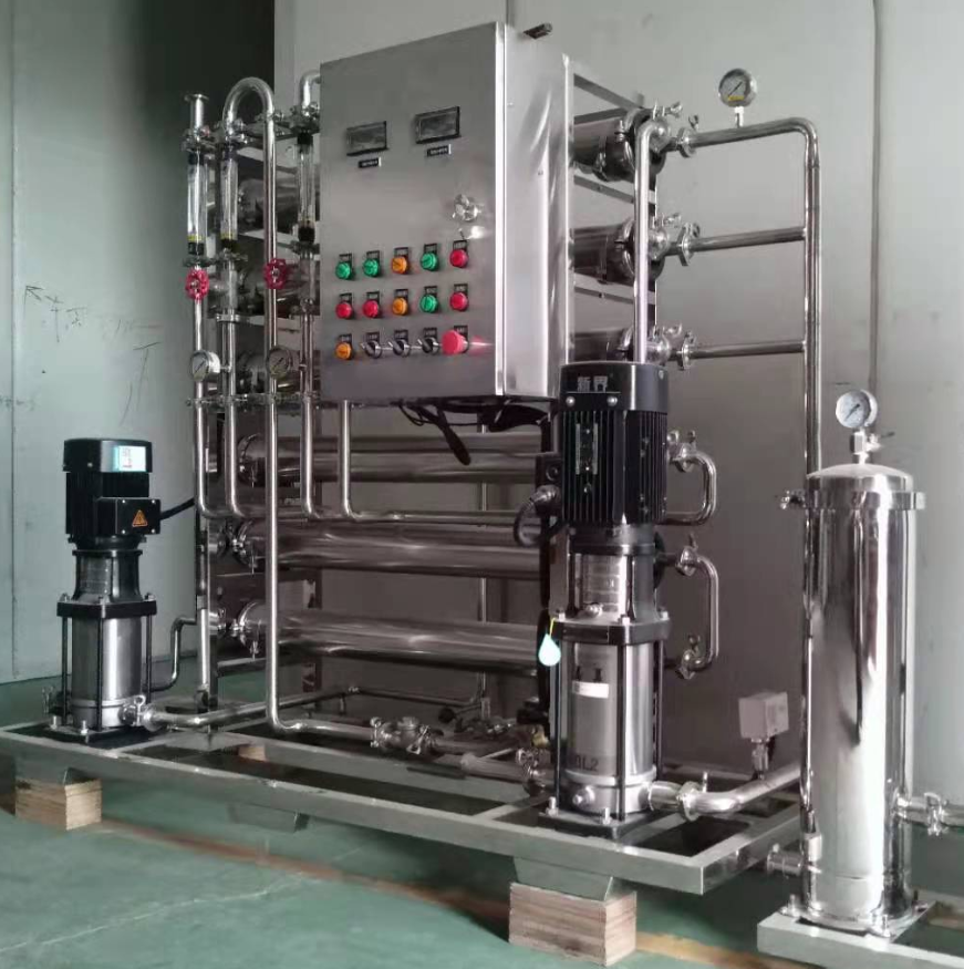 单级反渗透系统处理后,产水电导率<10-20μS/cm,在经过二级反渗透系统后产水电导率<5μS/cm甚至更低,在二级反渗透系统后辅以离子交换设备或EDI设备可以制备超纯水,使电阻率高达18兆欧姆.厘米)。双级反渗透纯水系统根据不同的源水水质采用不同的工艺。